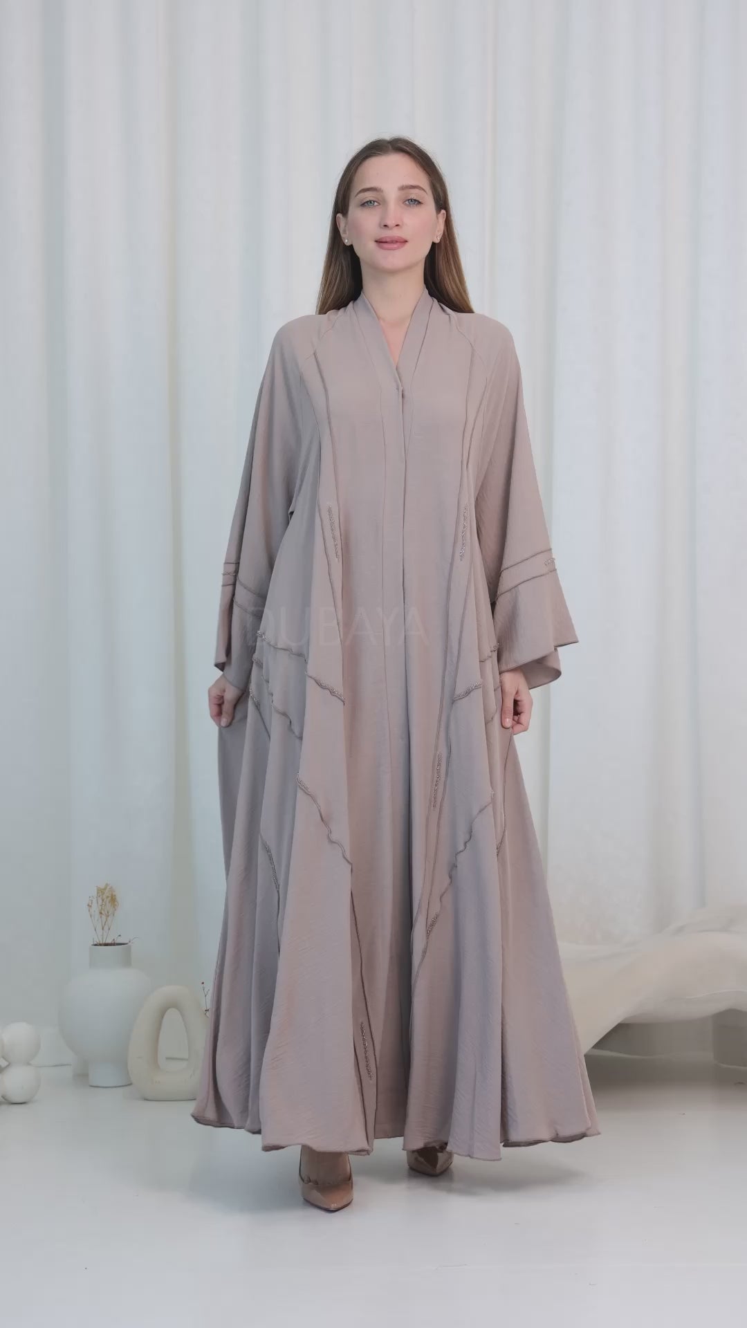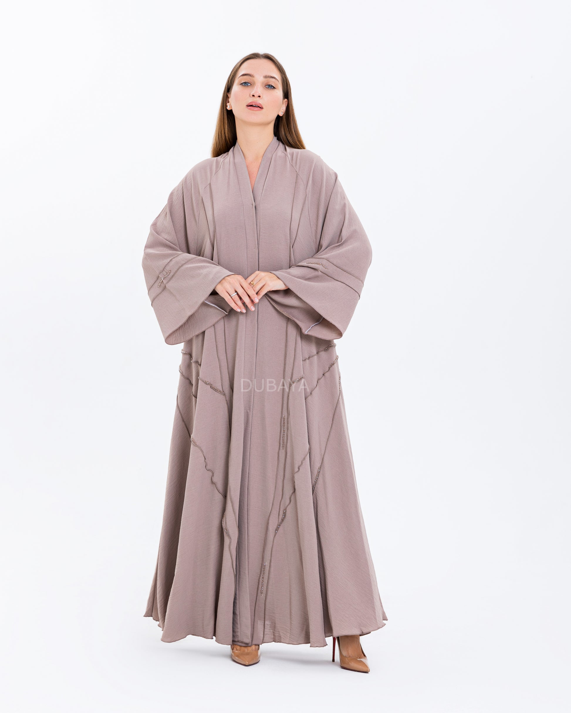 De linnen rose abaya is perfect voor het warme weer door de luchtige linnen stof.